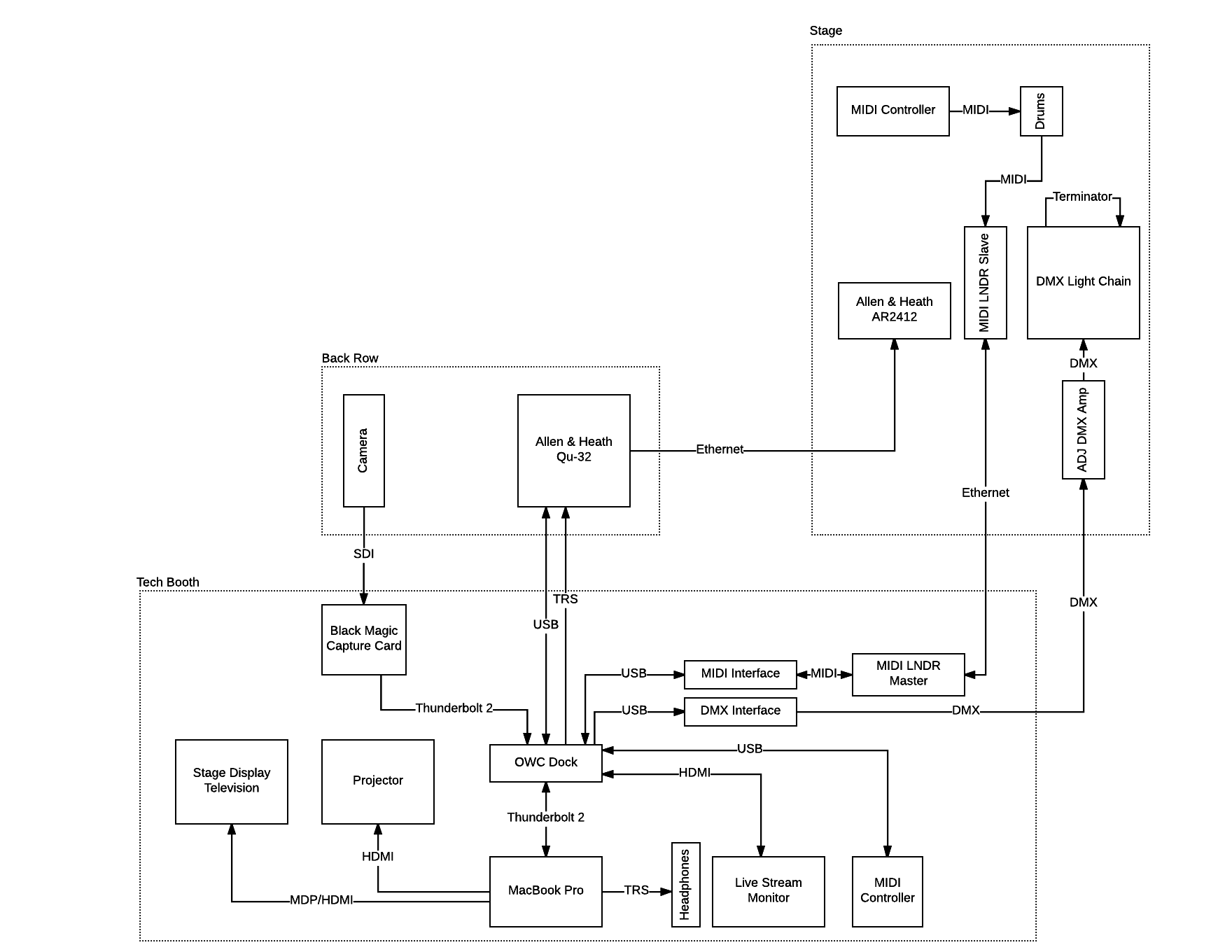 - Designed and implemented live production setup using ProPresenter, Reaper, Lightkey, and Wirecast. See diagram.